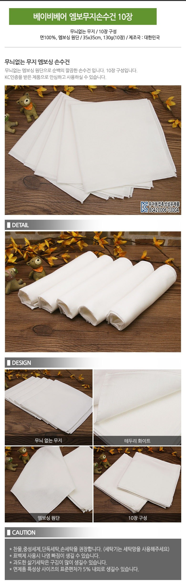 - 무형광 제품: 아이에게 안전한 무형광 손수건임을 고려할 것