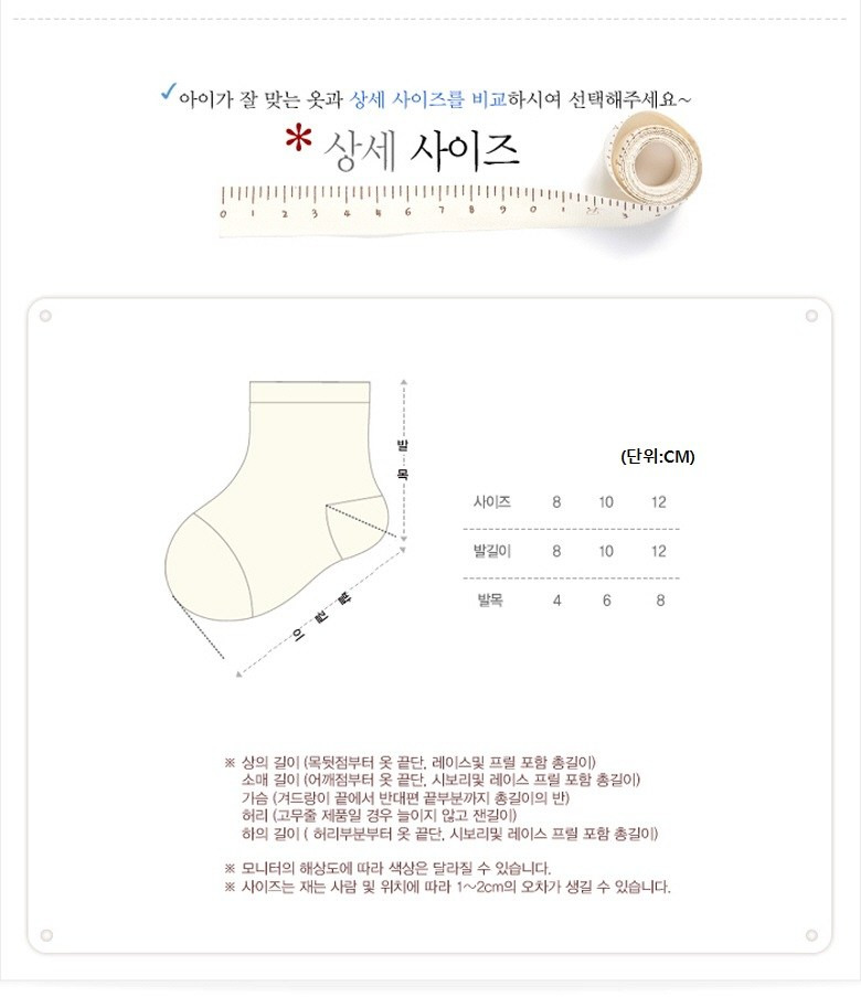 - 사이즈: 아기 발 크기에 따라 사이즈 선택이 어려움