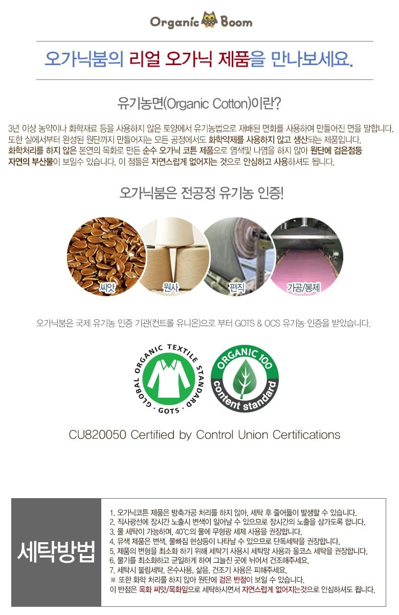 - 오가닉 소재: 아기 피부에 자극적이지 않고 순한 오가닉 코튼 소재
