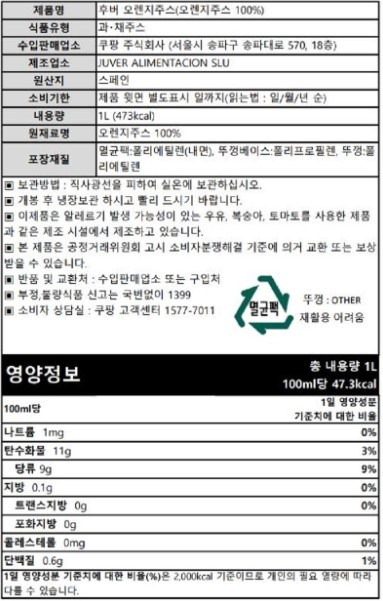 - 특징: 1L 기준 오렌지 12개 분량, 펄프 없음