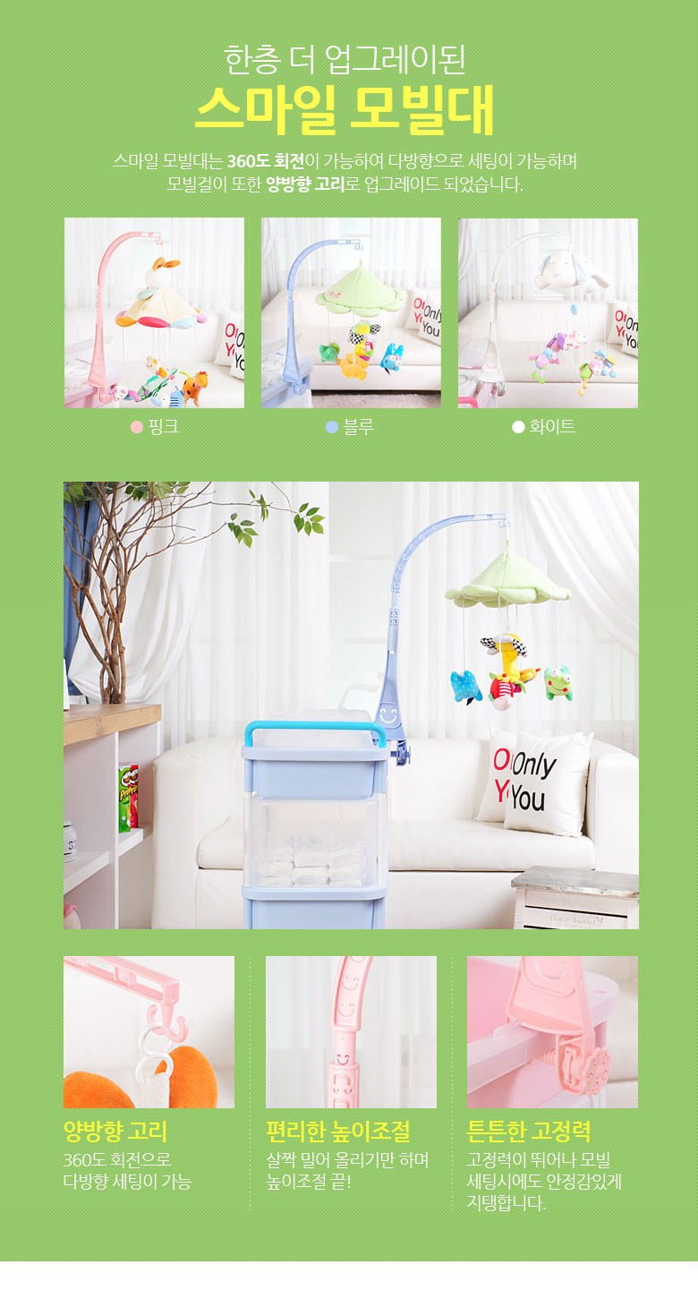 - 360도 회전: 모빌의 방향을 자유롭게 조절할 수 있다.