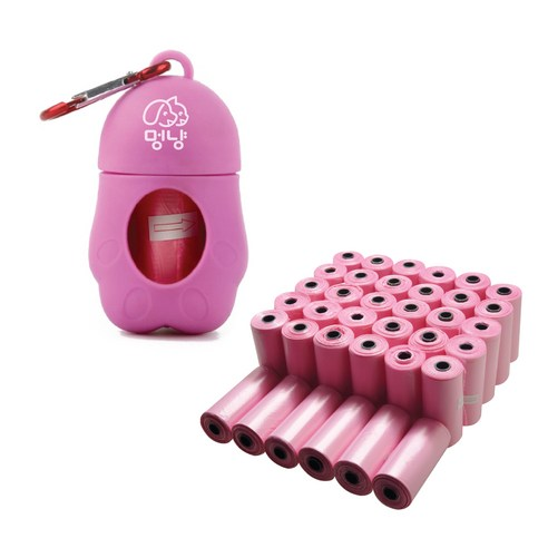 멍냥 반려동물 휴대용 배변봉투 케이스 + 리필봉투, 핑크, 15개입, 1세트 - 배변봉투 | 쿠팡