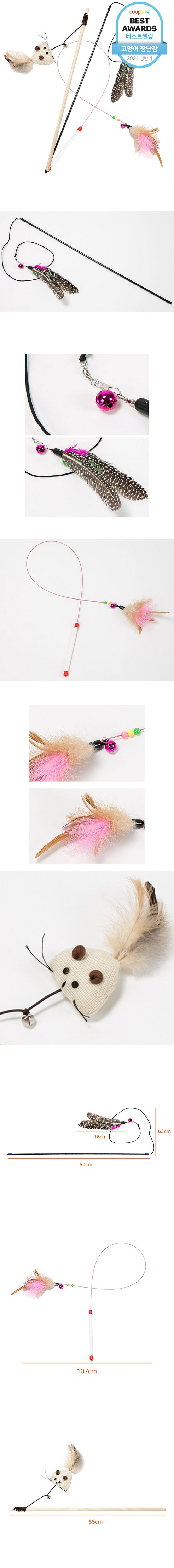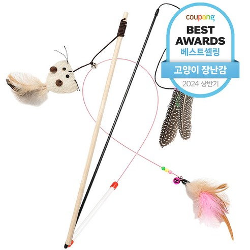 딩동펫 고양이 낚시대 우드 야옹이 + 깃털 + 깃털 와이어 장난감 세트 - 낚싯대/막대 | 쿠팡