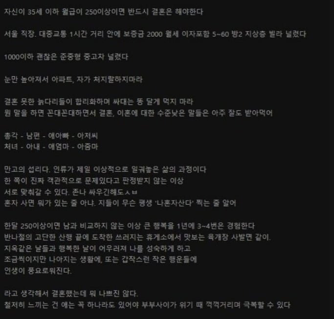 월급 250만원 이상이면 반드시 결혼해야 한다는 주장