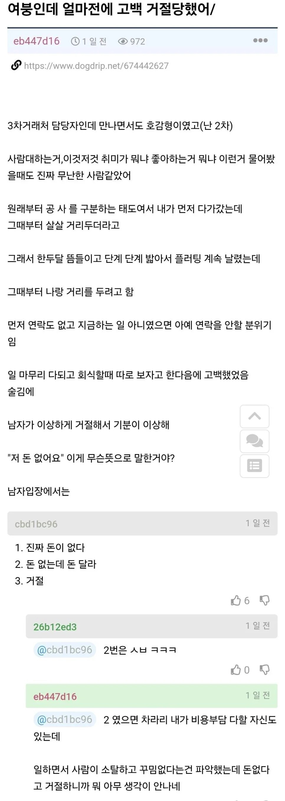고백했는데 거절당한 여자