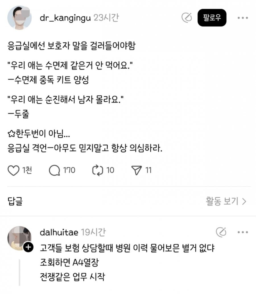 김수용이 의식을 되찾은 후 안부 문자에 남긴 답장