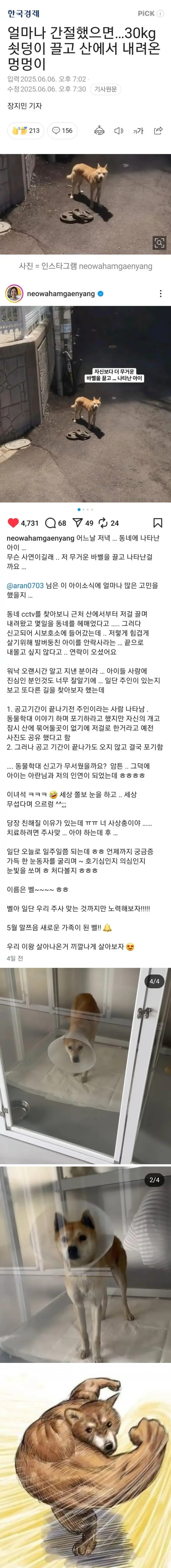산에서 30KG 원판 끌고 내려온 강아지