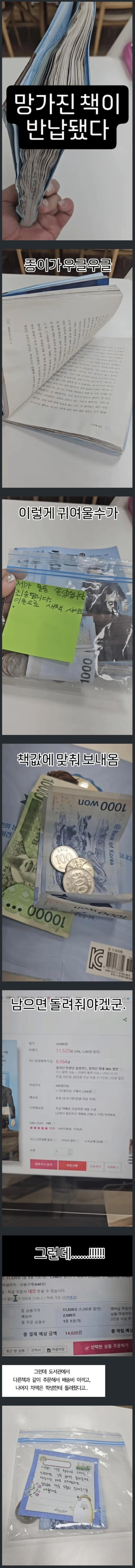학교 도서관에 망가진 책이 반납됐다