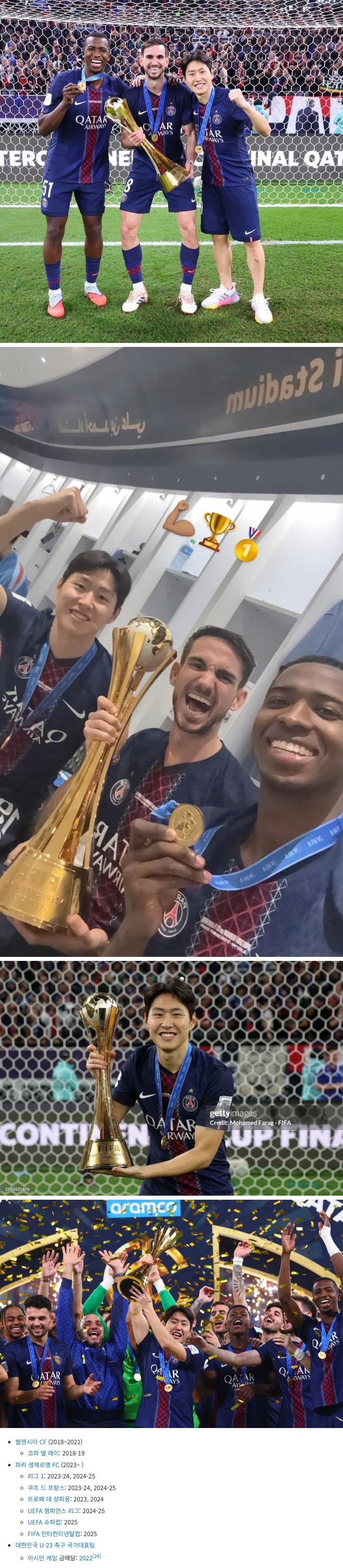이강인 우승컵 사진 커리어