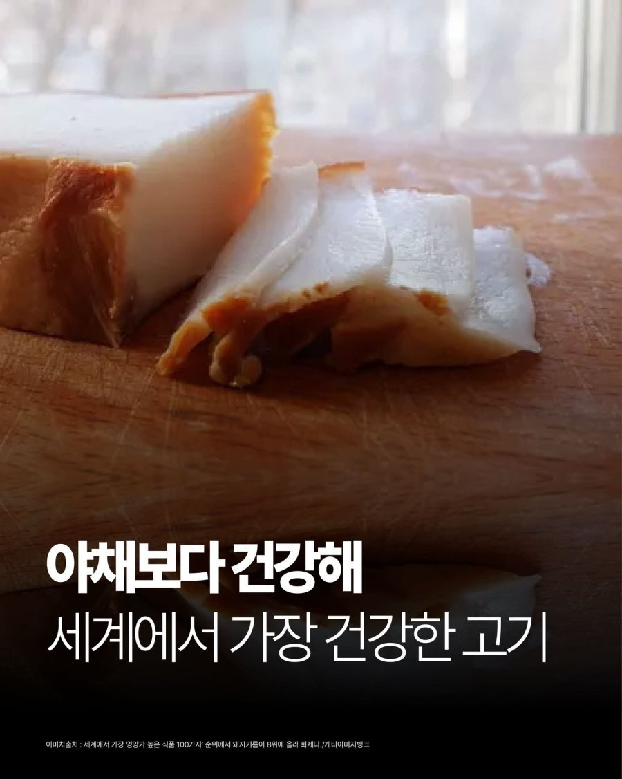 funnylearny.official 세계에서 가장 건강한 고기는? ‘세계에서 가장 영양가 높은 식품 100가지’ 순위에서 돼지기름이 8위에 올라 화제다. BBC 퓨처의 조사 결과를 인용해 돼지기름이 세계에서 가장 건강한 식품 100가지 중 8위를 차지했다고 보도했다. 돼지기름은 이 평가에서 73점을 받아 완두콩, 양배추, 고등어 등 대중적으로 ‘건강식’으로 알려진 식품 92가지보다 높은 점수를 기록했다. BBC 퓨쳐는 돼지기름이 비타민B의 좋은 공급원이며, 전체 지방 중 불포화 지방이 높다는 점을 주요 이유로 꼽았다. 돼지기름에 풍부한 비타민B는 에너지 생성·대사, 신경 기능, 면역력 증진에 필수적인 역할을 한다. 또한 탄수화물·지방·단백질을 에너지로 전환하는 데 관여해 신체 활동에 필요한 에너지를 공급하며, 부족할 경우 피로감이 쉽게 나타나고 대사 효율이 떨어질 수 있다. 또한 돼지기름은 전체 지방의 50~57%가 불포화지방산으로, 약 38% 수준의 포화지방보다 많다. BBC 퓨처는 돼지기름의 불포화지방이 양고기·소고기 지방 불포화지방 함량보다 높다고 설명했다.