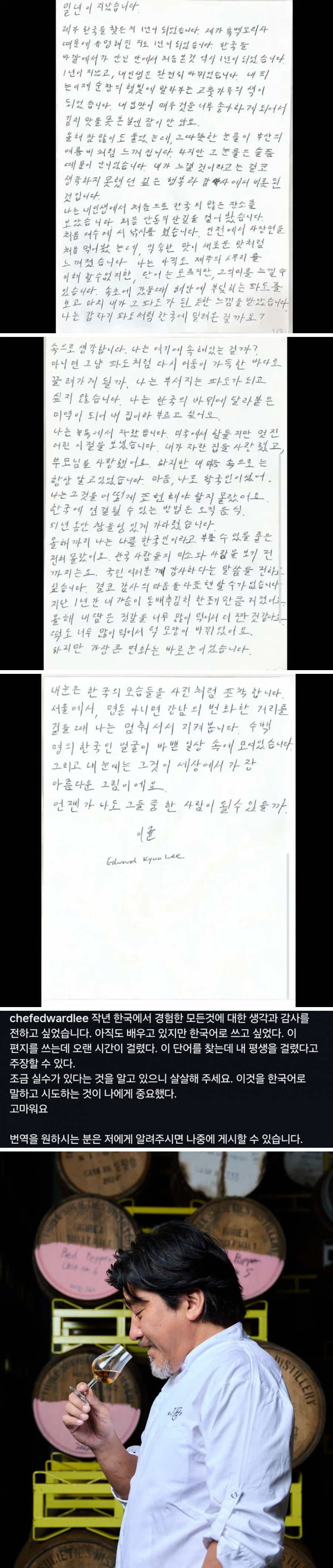 에드워드리 셰프 감동적인 한글 편지