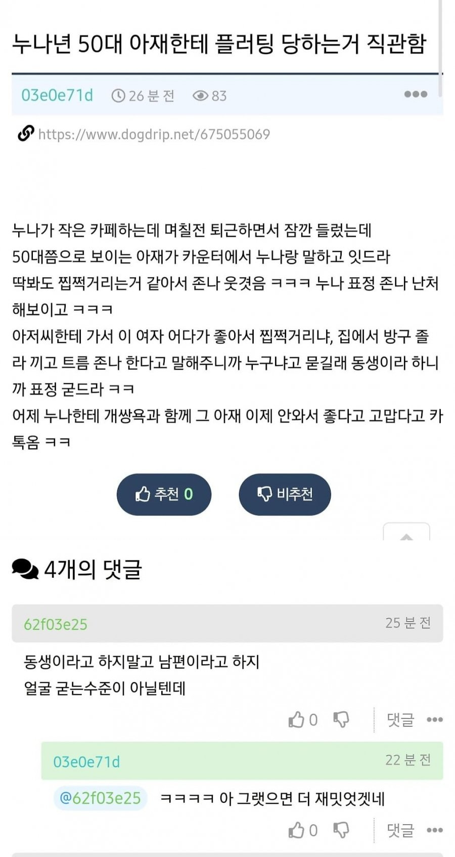누나한테 찝적거리는 50대 아재 퇴치한 남동생