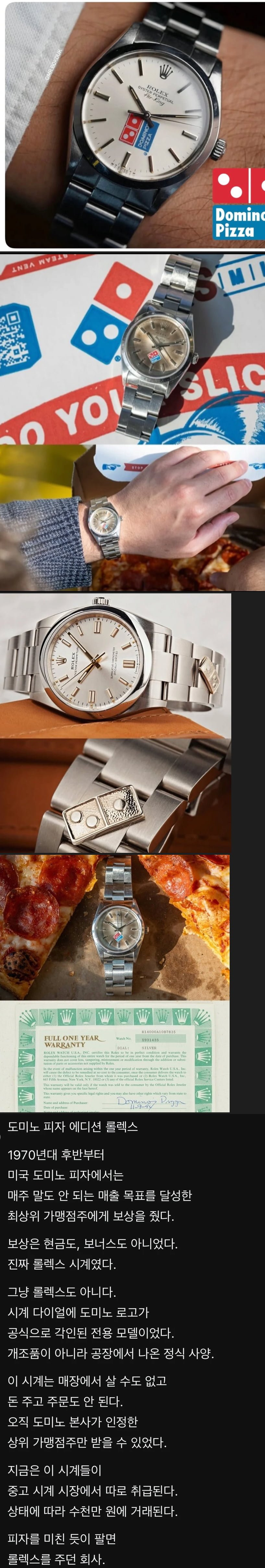피자 많이 팔면 롤렉스를 받을 수 있던 회사