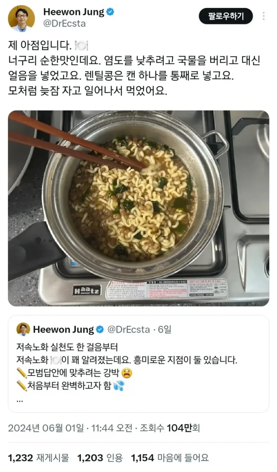 저속노화 너구리 라면