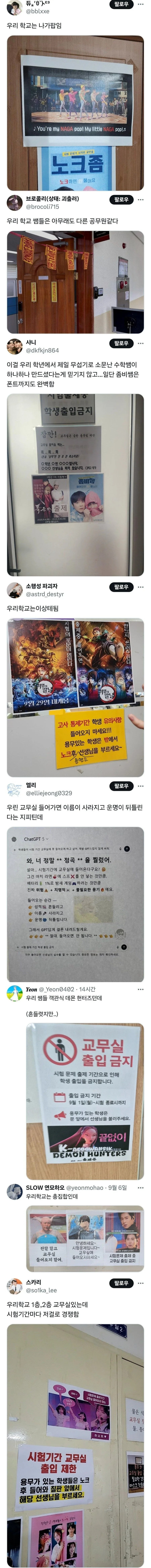 시험기간 교무실 출입 제한 문구들