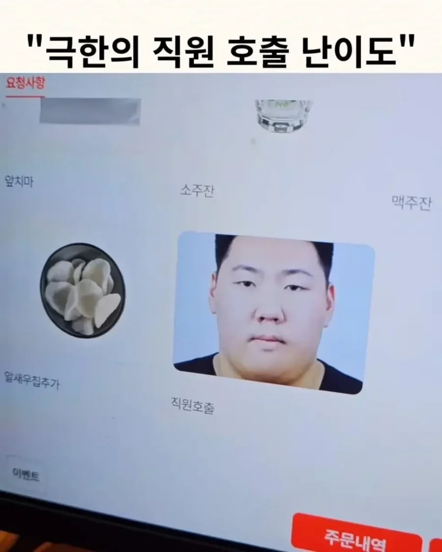 음식 잘못나온거 같은데 직원좀 불러봐