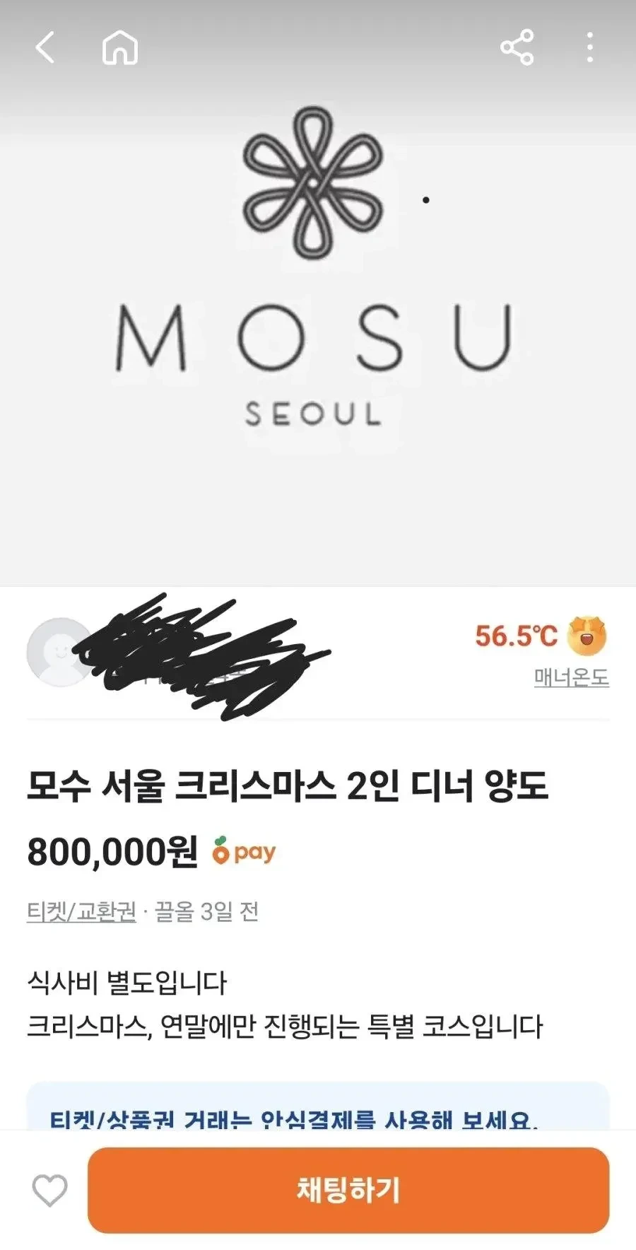 당근) 모수 식사 예약권 80만원