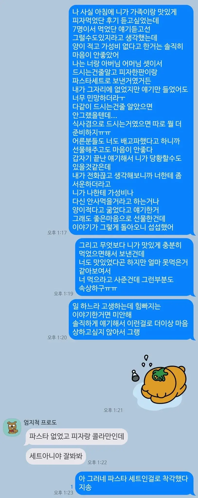 └ 그리고 친구도 "세트 아니였어"가 아니라 "나도 생각이 짧았어 미안해. 맛있게 잘 먹었어. 고마워" 라고 해야하는거 아니냐