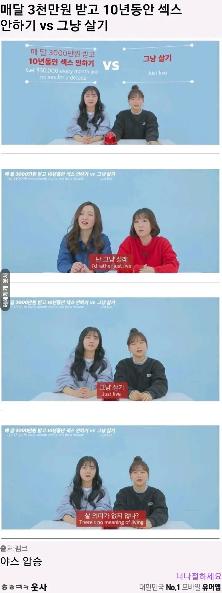 매달 3천받고 섹스 안하기 VS 그냥살기