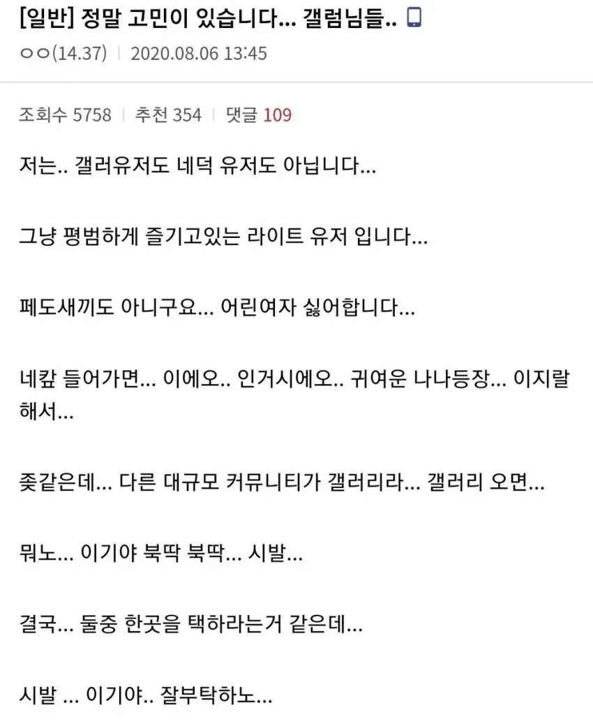 - 맞네. 규모 큰 커뮤라고 하면 디시 네캎 아카 정도 생각나는데 셋 다 방향성만 다르지 시궁창인건 똑같잖아 ㅋㅋㅋㅋㅋㅋ
