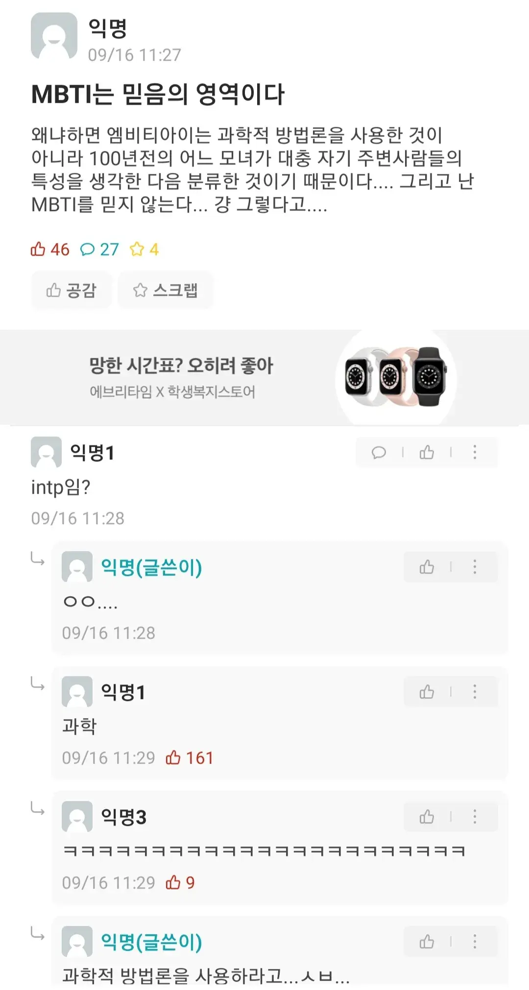 - MBTI를 믿고안믿고를 논하는것자체가 어불성설이야