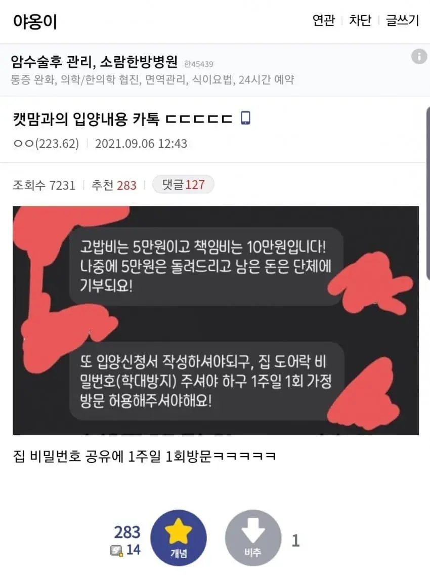 내가 입양한 이상 내가 알아서 키운다고 사전조사 했으면 끝이지 먼 지랄병나서 남에집 불시방문까지하냐
