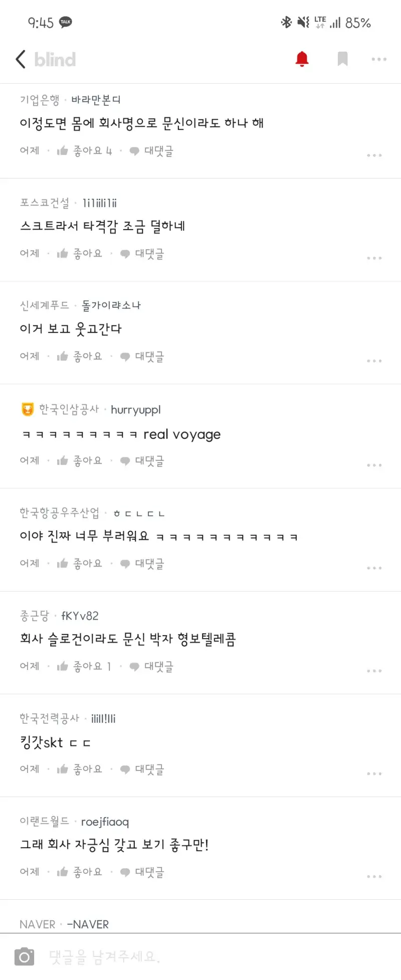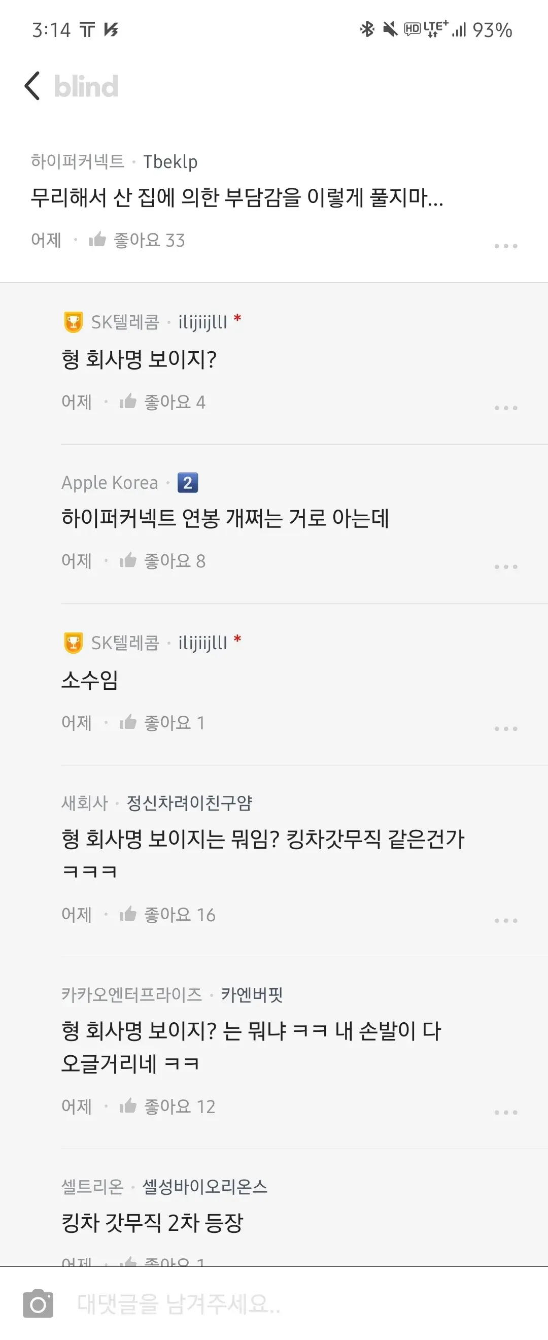 - 근데 쟤 당당히 욕하는 애들은 그와중에 또 회사좋네 ㅋㅋㅋ 욕도 회사좋아야 가능해 저기선 ... ㅋㅋ