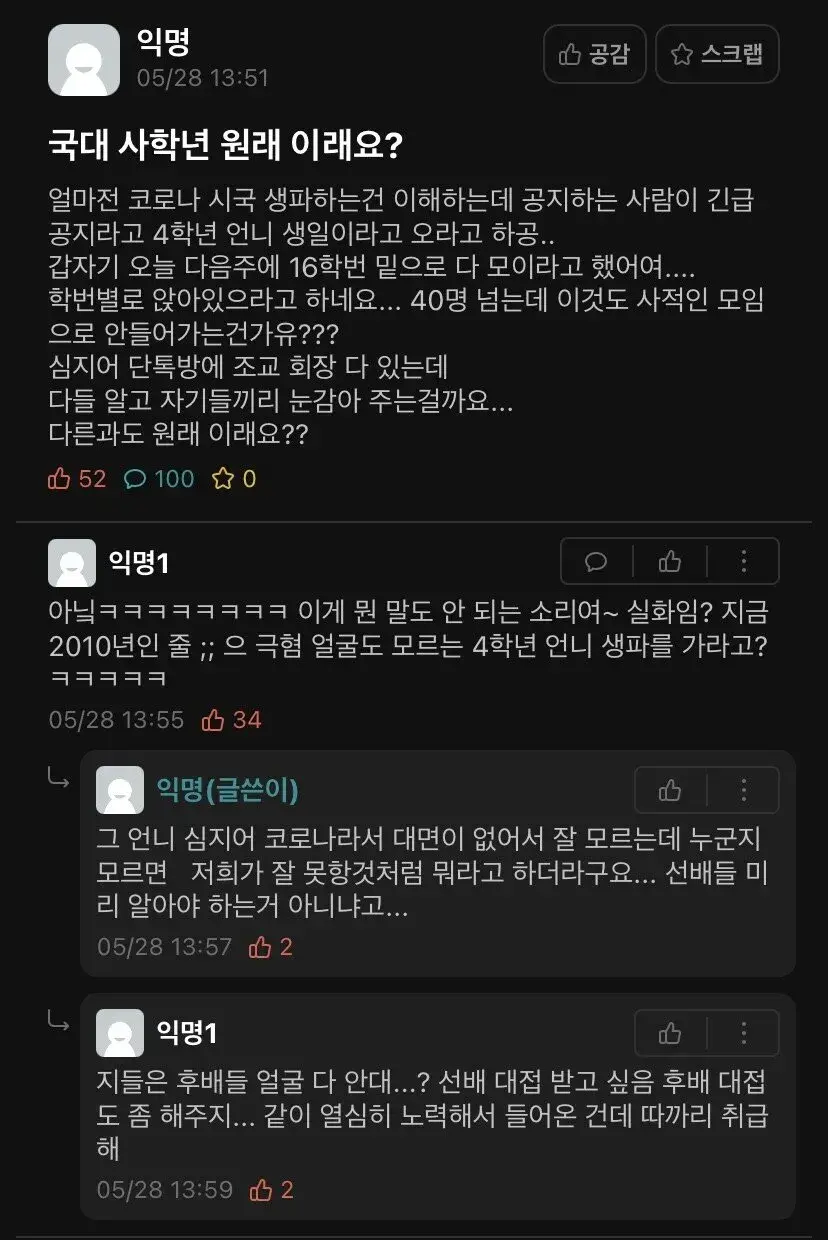 - 와ㅋㅋㅋ 지 생일에 부를 사람이 얼마나 없으면 얼굴도 모르는 후배를 강제로 불러서 앉혀야 되냐?