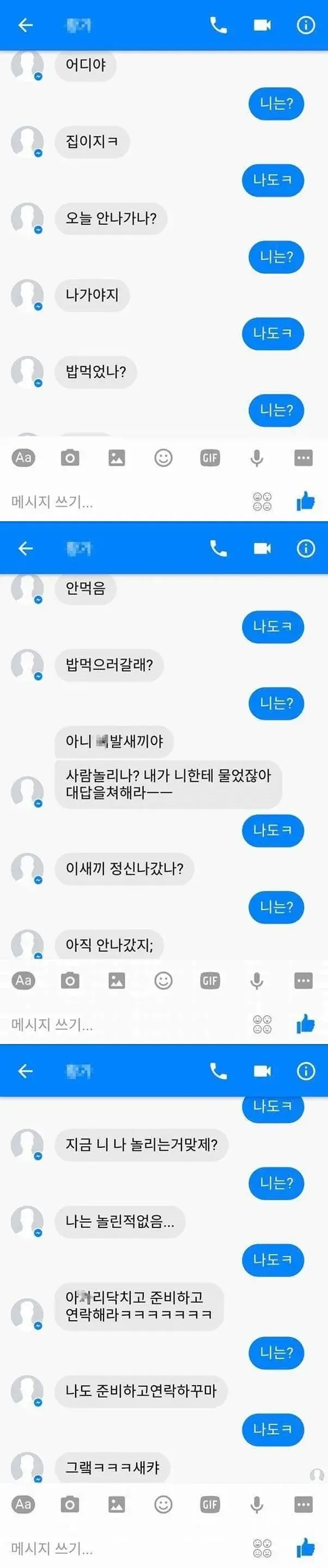 └ 이걸 꼬박꼬박 대꾸해주는 상대방도 개웃기네 ㅋㅋㅋㅋㅋㅋ