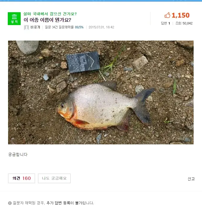 무책임하게 방류한 사람들 덕분에 올 블루 됨