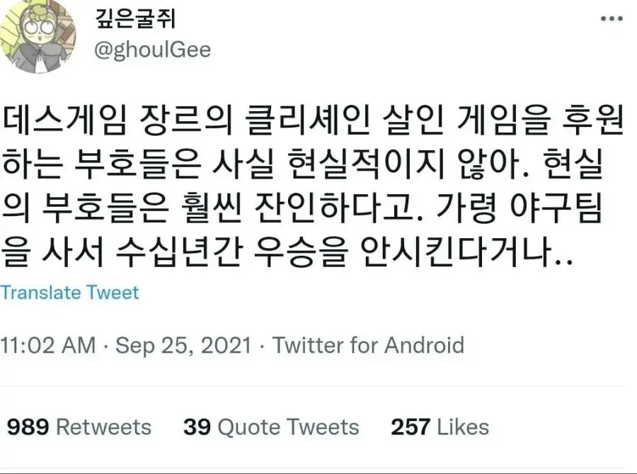 왜냐면 한국에는 재벌들이 야구단을 운영하면서 수십년동안 우승을 시키지 않기 때문이다.