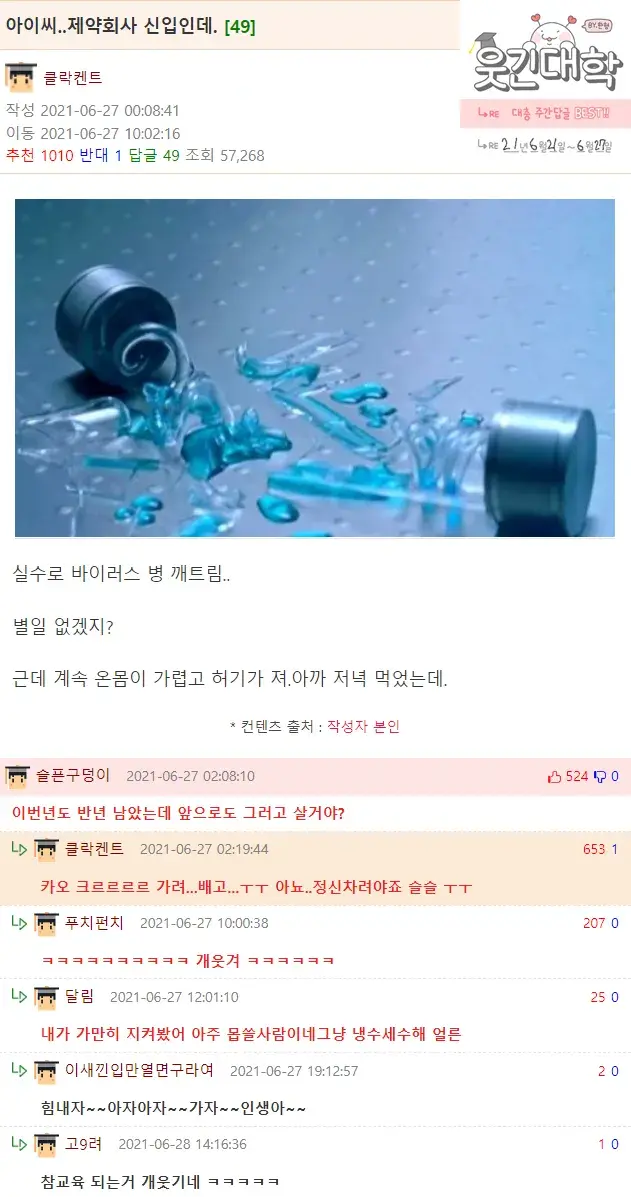 웃긴대학 주간답글Best! [21.06.21~21.06.27]