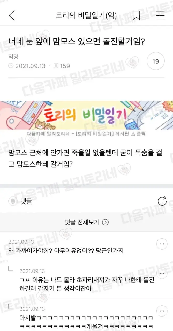 너네 맘모스가 눈앞에 있으면 돌진할거임?.jpg