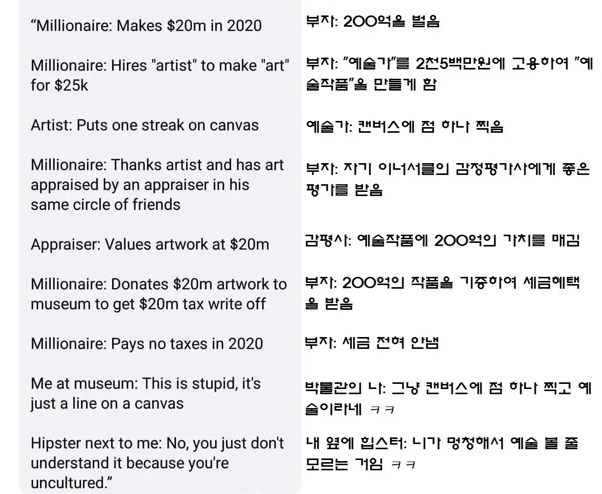 └ 그리고 과연 부자들의 재테크 수단 + 탈세 수단이 미술품이 아니었다면 과연 미술시장이 지금처럼 클 수 있었을까도 생각해봐야한다고 봄
