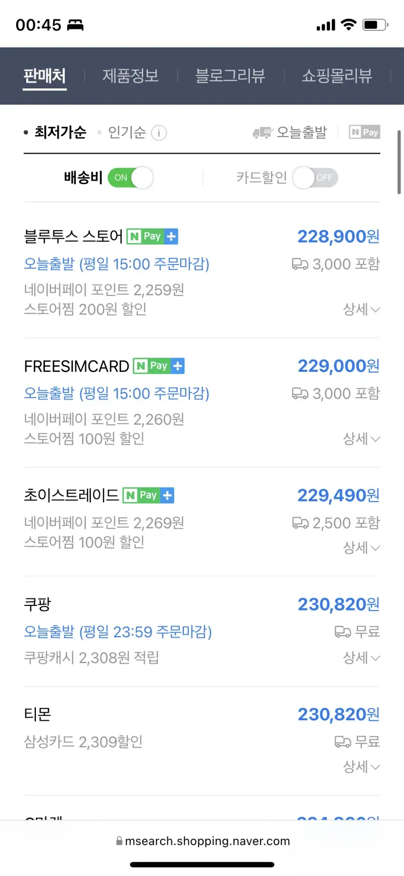 ㅇㅋ 확인 들어감. 배송비 포함해도 저 판매자가 배송비로 최저가 장난질하는 것보다 쌈.