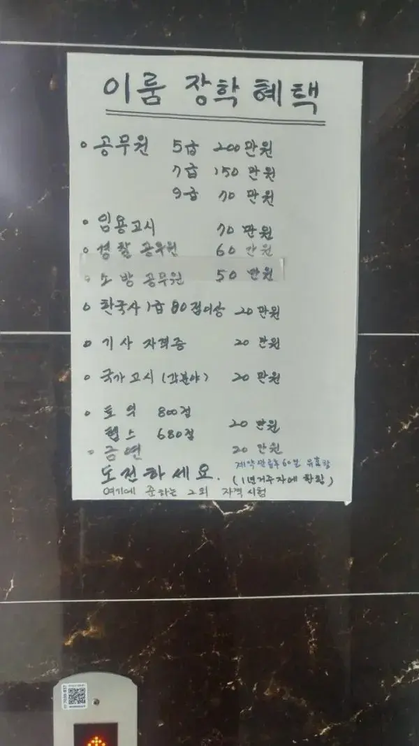 1년 이상 거주자에 한하여 장학제도를 도입한 원룸 건물주