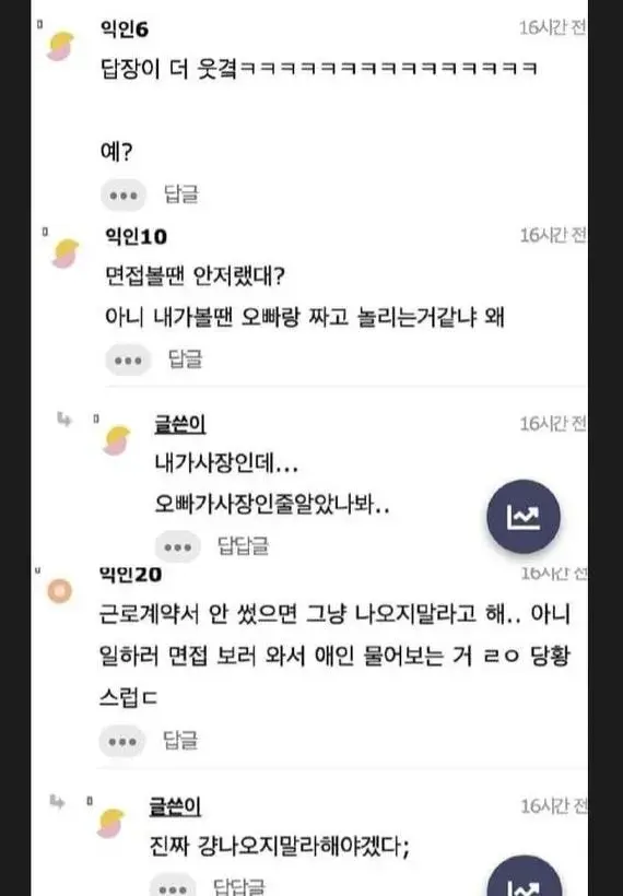 └ 일하러 와놓고 장난치는것마냥 저러는데 어떻게 뽑아..