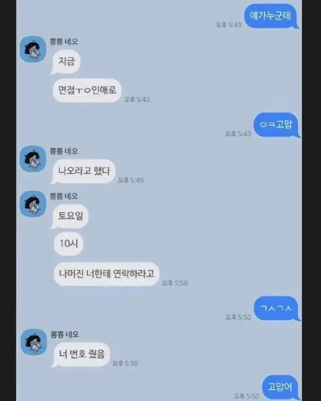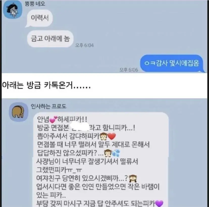 - 여자가 쿨하네 면접보고 나오랫다가 카톡하니까 나오지말라하면 나라면 화날듯 / 아님 다른 면접본대 합격해서 일부로 저런건가??