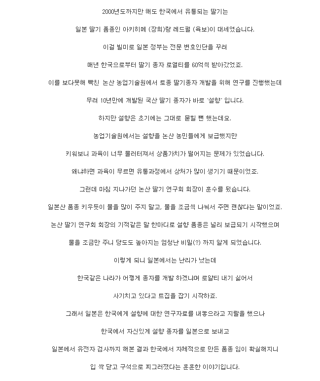 - 한국이 딸기 도둑질했다는 논리대로면 일본 딸기 품종은 서구권에서 도둑질해온 것.
