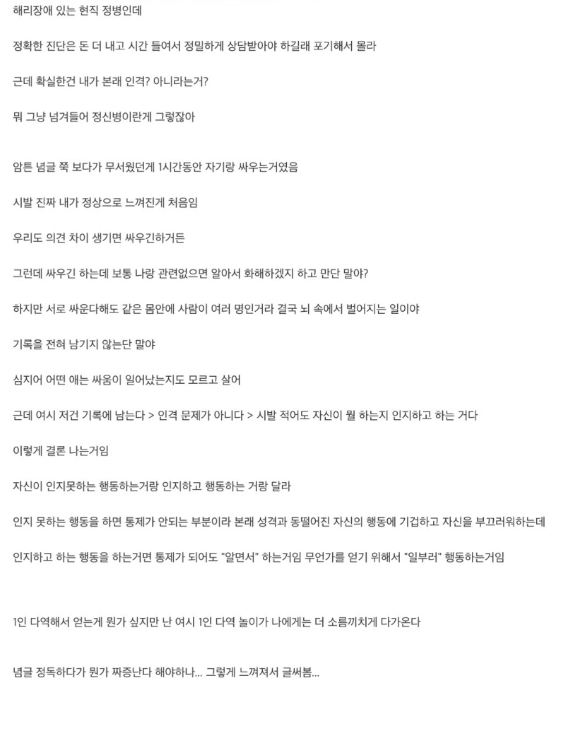 - 인격이 더부살이하는게 문제지 인격 개개인이 미친건 아니라는 소리로군