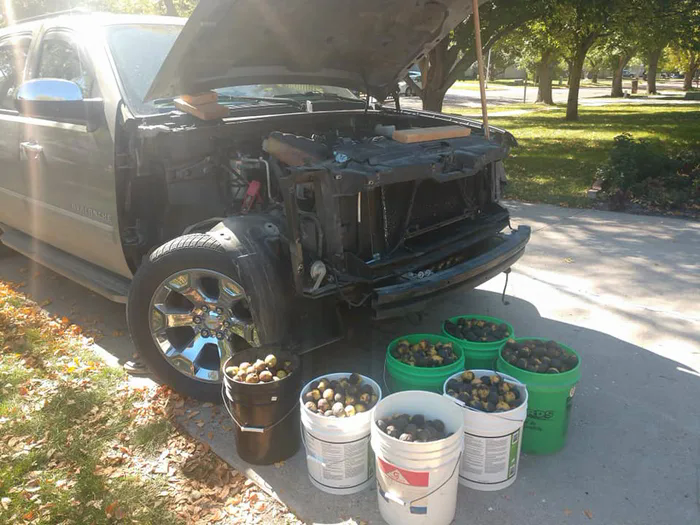 장기간 주차된 자동차에 호두 148kg을 숨겨둠
