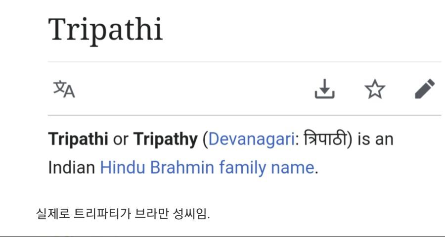 근데.. 트리파티라는성은 브라만 성씨임