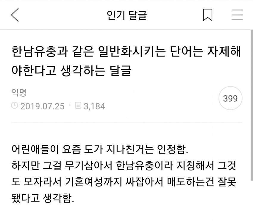 - 자신의 극단적인 의견에 공감받기 위해 스스로 평범한 사람이 공감할만한 의견을 만들어내서 그걸 공격하네 오직 혐오만을 위해 이렇게까지 까다롭고 성가신 일을 한다는게 참 안쓰럽다...