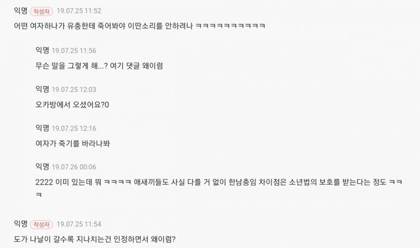- 저런 애들 다른 커뮤에 한둘만 풀려도 순식간에 여론조작 가능하겠는데?