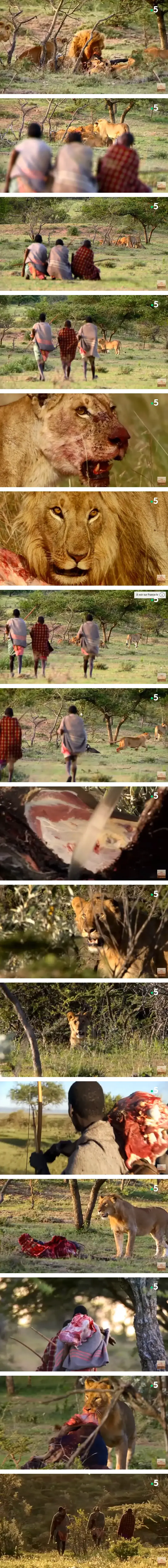 - 추가 : 저 남자들은 부족에서 가장 강단있고 용감한 남자들만 추려서 감, 가서도 사냥하는 사자들 보고 자기들끼리 농담따먹기도 하고 쪼개기도 하는 장면을 '연출'함, 사자들은 보통 자기들 보고 쫄아서 도망치는 동물들만 봤기때문에 이런 모습에 냥당황함, 마지막에 남자들이 씩 웃으면서 사냥감 털러 오면 자기들보다 겁나 쎈 존재인줄로 알고 냥당황×100 하면서 도망치는 원리