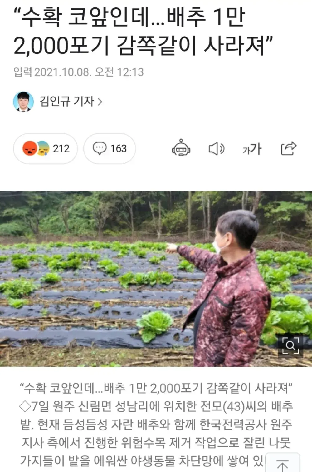 하루만에 배추 1만 2천포기를 먹는 야생동물이 있다?.news