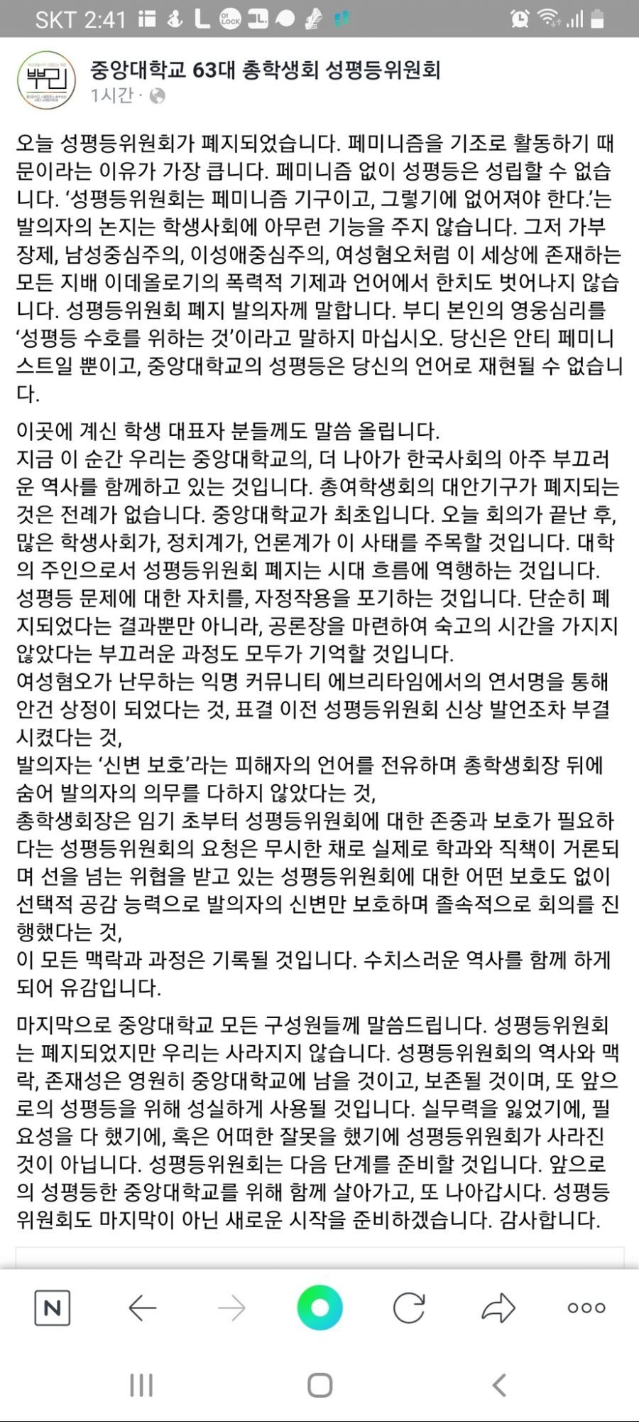 여총에 이어서 성평등위원회도 삭Xae 옳게 된 대학교란 이런거지