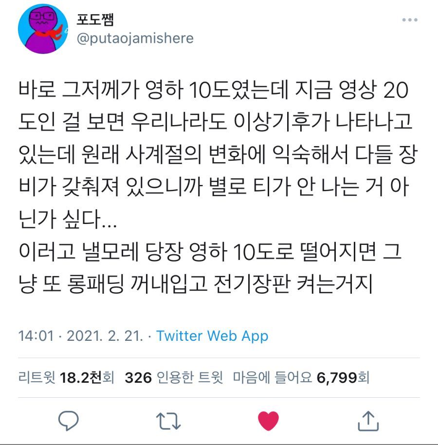 - 그래도 예전이랑 비교하면 날씨 진짜 붕신같음.... 20년전 날씨로 돌으가면 좋겠어...