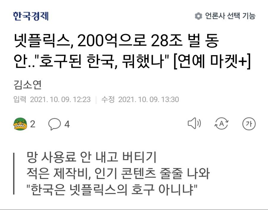 넷플릭스, 200억으로 28조 벌 동안.."호구된 한국, 뭐했나"