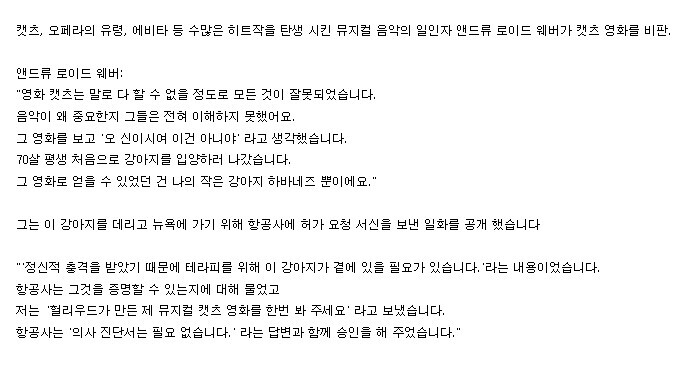 캣츠 원작자 "영화판 캣츠 보고 개를 입양했다."